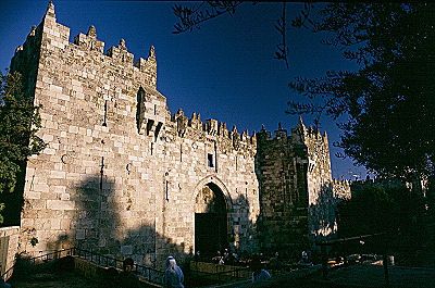 This is a view of the Damascus Gate viewing from the direction of the crucifixion (though much closer). This was and still is the main entrance into the Old City. Roman crucifixions were performed at these high traffic spots to scare people from rebelling against them.